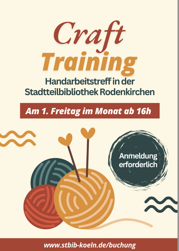 Stadtteil-Bibliothek Rodenkirchen Schillingsrotter Str. 38, Köln, NRW, DeutschlandBring gerne dein angefangenes Handarbeitsprojekt mit. Jeden 1. Freitag im Monat glühen bei uns die Nadeln. Egal ob Stricken, Häkeln, Handquilten oder Sticken. In gemütlicher Runde kann gewerkelt werden. Bring […]