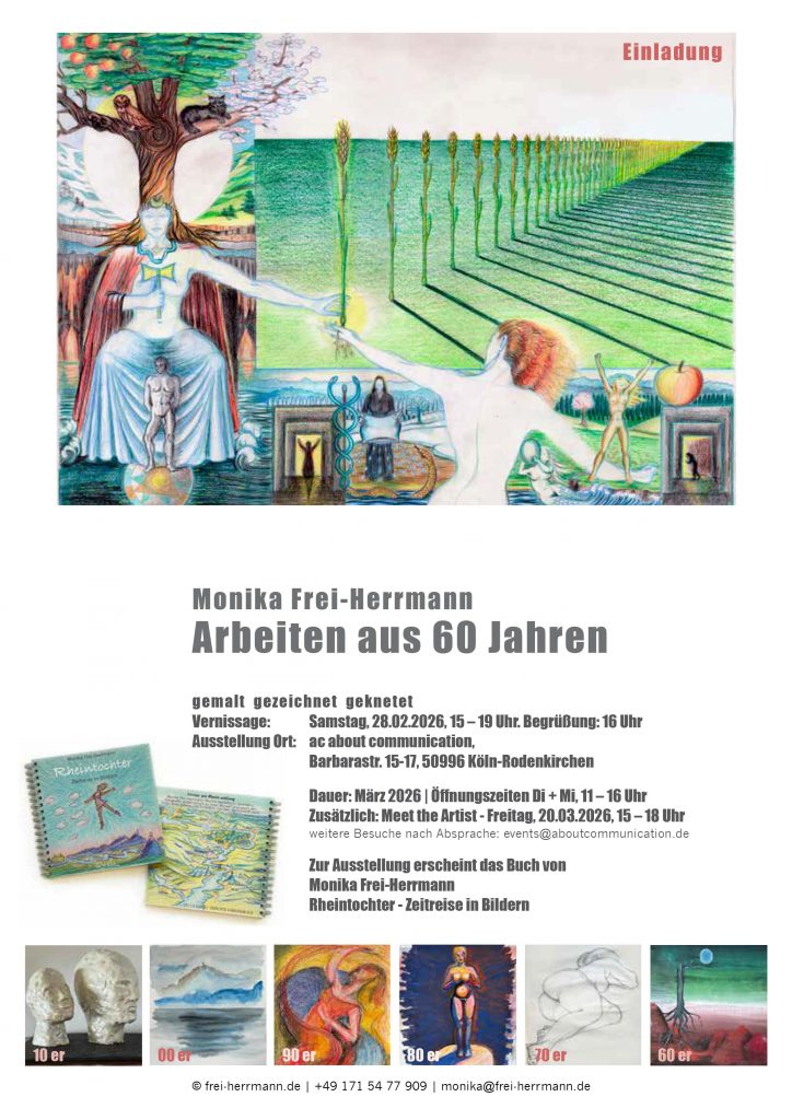 ABOUT:EVENTS Barbarastraße 15-17, Köln, NRW, DeutschlandEröffnung 28.02.2026, 15 bis 19 Uhr Dauer: 28.02. – 28.03.2026 | Öffnungszeiten Di + Mi, 11 – 16 Uhr Zusätzlich: Meet the Artist – Freitag, 20.03.2026, 15 – 18 Uhr […]
