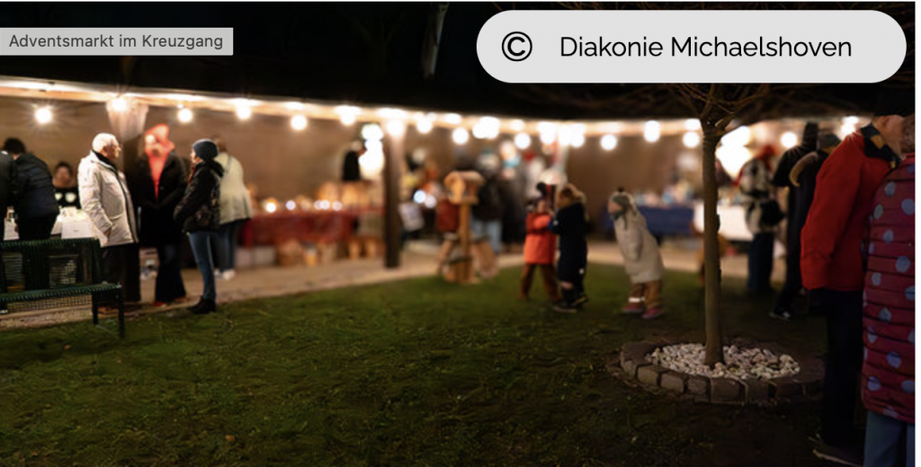 ![]() Herzliche Einladung zum alljährliche Adventsmarkt im Kreuzgang der Erzengel-Michael-Kirche auf dem Campus der Diakonie Michaelshoven. In Vorfreude auf die Weihnachtszeit haben die unterschiedlichen Bereiche und Gruppen wieder gebastelt, geschnitzt, gehäkelt und gebacken. Wenn Sie noch auf der Suche nach einem individuellen und einzigartigen Geschenk für Ihre Liebsten zu Weihnachten sind, dann besuchen Sie unseren Adventsmarkt. […]