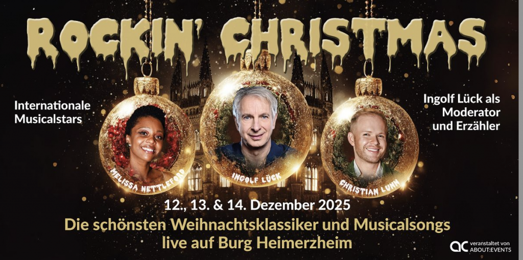 ![]() Ein exklusiver Abend voller Musik mit Live-Band, Weihnachtsklassikern und großer Unterhaltung auf Burg Heimerzheim. In einzigartiger Kulisse bringen die Musicalstars Christian Lunn und Melissa Nettleford, bekannt aus der Europa-Tour der Rocky Horror Show in den Rollen von Riff Raff und Magenta, eine liebevolle Hommage an die Rocky Horror Show auf die Bühne. Ingolf Lück führt […]